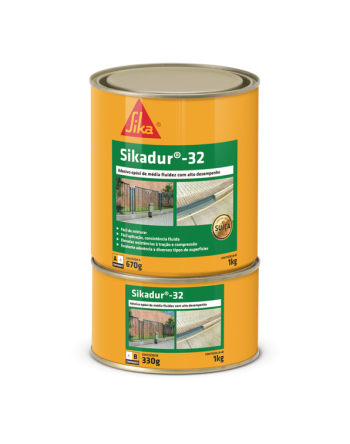 Sikadur®-32 é um adesivo estrutural à base de resina epóxi, de média viscosidade (fluido), bicomponente, especialmente formulado para colagens em geral, de concreto velho com concreto novo e chapas metálicas ao concreto. Apesar de possuir consistência fluida, não é autonivelante.